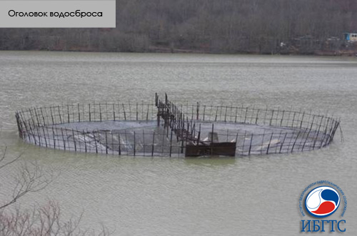 Оголовок водосброса (на карте это белая точка). По сути похоже на верхнее отверстие в ванне, через которую излишек воды уходит в трубу.