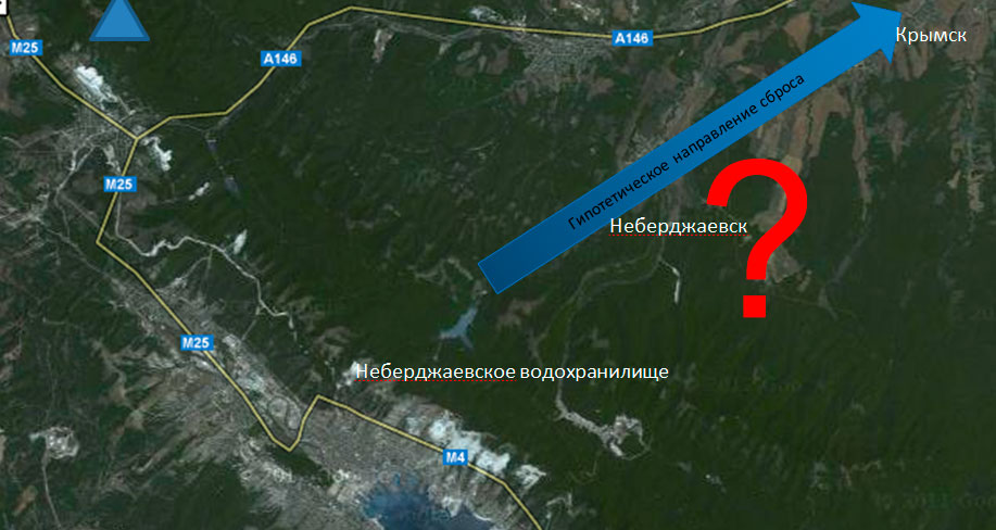 Против версии спуска воды из Неберджаевского водохранилища говорит и то, что у Неберджаевского водохранилища НЕТ регулируемого нижнего спуска. Есть только верхний паводковый сброс. А что такое паводковый сброс? Это когда вода переполняет края, и ИЗЛИШНЯЯ вода начинает вытекать из водохранилища. Т.е. даже если вода стала перетекать из водохранилища (что не исключено) — это прямое следствие громадного поступления воды в само водохранилище с близлежащих гор...