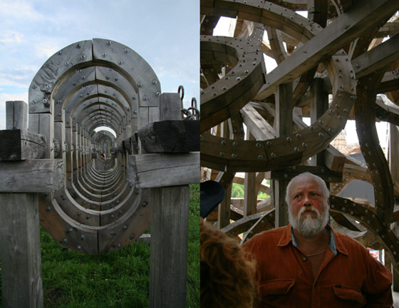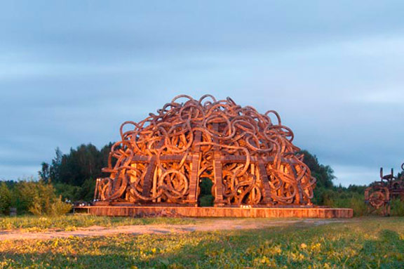 Говорит без сожалений. В Никола-Ленивце мы как будто видим цейтраферную съемку, ускоренный цикл жизни зданий и вообще творений рук человеческих. Обычно от закладки первого камня в фундамент до руины или намеренного разрушения проходит несколько столетий, здесь же только что сделанное очень быстро уходит в небытие. Если вспомнить первые работы – так они были вообще из снега, и весной испарилась целая армия снеговиков, и растаял снежный акведук. В этом есть что-то от песочных мандал буддийских монахов – их насыпают из цветного песка и тут же уничтожают, сдувая, тренируя смирение перед тем, что нет ничего вечного. Но в этом ускорении цикла есть и деятельный, позитивный момент – когда старое уходит, появляется возможность создать нечто новое.
