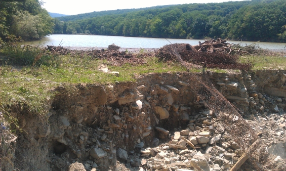 Сейчас этот полутораметровый барьер пропитан водой, кое-где идут тонкие ручейки. Катастрофический слив смыло волной, донный слив сбрасывает десять сантиметров в сутки.