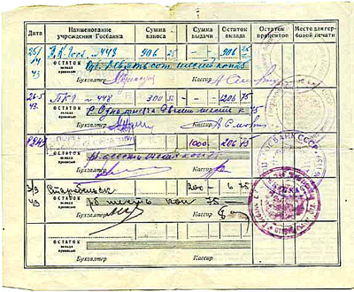 Но сразу после войны в этой системе обнаружили бреши. В мае 1945 года вышел совместный приказ финансового управления Наркомата обороны и Управления полевых учреждений Госбанка СССР, в котором говорилось: «…выявлены серьёзные недостатки в работе некоторых финансовых органов и полевых учреждений Госбанка по выполнению завещаний вкладчиков-военнослужащих, погибших на фронтах Отечественной войны. Установлены случаи, когда начальники финансовых органов войсковых частей и соединений... задерживали у себя вкладные книжки погибших и пропавших без вести военнослужащих вместо немедленной передачи этих вкладных книжек полевым учреждениям Госбанка. В ряде случаев вкладные книжки погибших военнослужащих направлялись... по месту призыва военнослужащих, минуя Госбанк. Отдельные из таких вкладных книжек терялись».