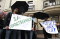 В пятницу у здания суда проходила акция в поддержку участниц панк-группы. Двое сторонников девушек были задержаны сотрудниками полиции после того, как прокричали "Свободу Pussy Riot!". Один из задержанных держал в руках плакат с аналогичным лозунгом, вторая задержанная была с небольшим плакатом "Богородица, Путина прогони".