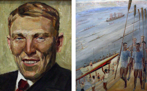 Алексей Шишов "Портрет Стаханова", 1938; Сергей Лучишкин "карнавал на Москве-реке", 1932. Из коллекции ГТГ. Выставка «Музей пролетарской культуры. Индустриализация богемы». Героями выставки Жиляева становятся советские рабочие, чьи произведения показаны в экспозиции. Биографии этих людей изложены дивным языком советской газетной заметки. Рубен Иванович Белоглазов, «инженер непростой судьбы», представлен полкой-лозунгом 60-х годов из краеведческого музея в Воронеже - такие полки делал и сам Жиляев. «В своих емких и лаконичных интерьерных решениях Белоглазов всегда исходил из того, что новый быт настоящего коммуниста неразрывно связан с пониманием освободительной миссии пролетариата и ведущей роли партии».