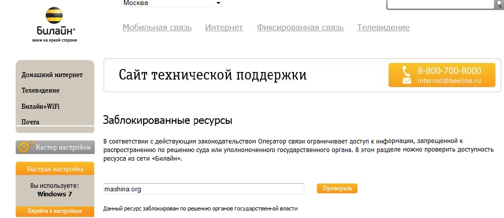 В пресс-службе "Билайна" нам объяснили, что "ВымпелКом" (владелец торговой марки "Билайн" — PublicPost) действительно выполнял предписание правоохранительных и надзорных органов. "Данный IP-адрес находится в списке запрещенных IP-адресов Министерства Юстиции. Мы действительно получили судебное предписание на блокировку сайта, содержащего признаки экстремистской информации и призывов к террористической деятельности. Речь идет не о сайте mashina.org, но в связи с тем, что данный ресурс имеет один IP-адрес с экстремистским сайтом, то доступ части пользователей к сайту г-на Навального может быть затруднен", — говорится в официальном ответе компании.