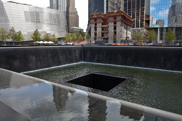 Памятник жертвам терактов 11 сентября представляет собой два квадратных «бассейна» - каждый расположен на месте рухнувшего небоскреба.