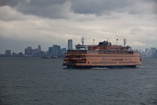 направились на паром, провозящий мимо Леди Фридом. Плыть на теплоходе с высадкой на остров опять же не было времени, поэтому решили действовать, как в том анекдоте — мне и отсюда хорошо видно. Огромный паром до Стейтен-Айленда - совершенно бесплатный, мы фотографировали Статую, проплывая мимо острова Свободы.