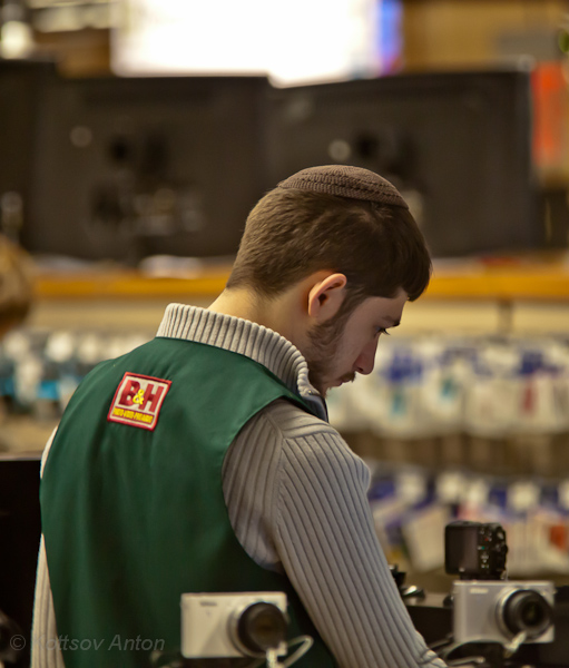 Утро у нас было свободное, и мы забежали в широко известный в определенных кругах магазин B&H Photo. Удивили четыре вещи — там работают одни ортодоксы, там есть все, что следует из названия (вожделенную штуку мы нашли и протестировали), заказы к кассирам приезжают в корзинах, которые движутся по прикрепленным к потолку «рельсам», продавец с двумя огромными стаканами питья не знал, как по-английски пишется слово «Москва».