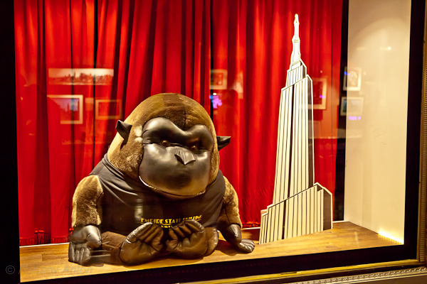 Победила прыть пытливого туриста — решили лезть, благо жили мы всего в квартале от этого чуда. Пропускной режим туда серьезный — на входе у нас отобрали штатив. Здание очень гордится тем, что именно на него лез Кинг Конг в одноименном фильме, и эта тема нашла свое отражение в картинках, игрушках и многообразных сувенирах.