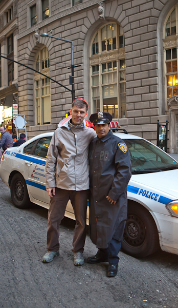 Обфоткав быка мы заметили полицейского, который его охранял от вандалов. Обфоткав его и сфоткавшись с ним, продолжили шествие к Уолл-Стрит.