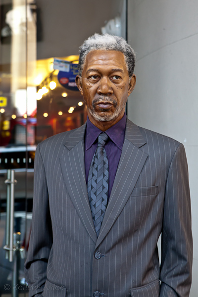 В нашем списке «вот бы успеть хоть одним глазком» оставался невычеркнутым один пункт, и мы отправились в музей Мадам Тюссо. Теперь я наверное понимаю, что чувствует маленький ребенок в Диснейленде. Вокруг — известные тебе персонажи, почти такие же, как в телевизоре. Удивляться начинаешь еще на входе — там стоит настолько правдоподобный Морган Фримен, что становится странновато.