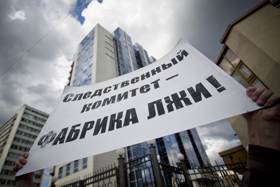 Акция «ОккупайСК» началась примерно в 18:00, хотя активисты с плакатами, вроде «СК — фабрика лжи», или с призывами к Следственному комитету «расследовать, а не фальсифицировать» дела, появились здесь еще раньше. Примерно в 18:15 сюда приехал и Сергей Удальцов, лидер «Левого фронта».