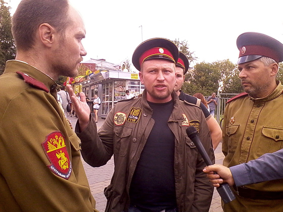 16.21. Лизер. Георгиевцы кричат: «Свободу от греха»! Толпа им отвечает – «Свободу Pussy Riot!». Те кричат: «Христос воскресе»! Толпа отвечает – «Свободу Pussy Riot!». Рядом с георгиевцами стоит поп с иконой, молчит. К нему подошли несколько женщин, он их перекрестил, а они поцеловали ему крест.