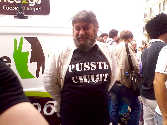16.12. Лизер. Толпа немного поредела. Только что уехал очередной автозак, вероятно заполненный людьми. Задержанных много. Сидит бабушка, у нее на голове белая повязка с надписью «Мне 80 лет», она держит табличку с лозунгом «Свободу Pussy Riot». Толпа разноцветная, многие девушки одеты в стиле Pussy Riot. Попадаются люди с иконами, в частности ходил поп, который считает, что «тут жидовский заговор».