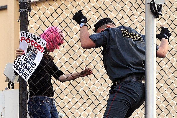 Полиция отпустила большую часть задержанных накануне у Хамовнического суда, но в ОВД "Хамовники" остается гражданская активистка Татьяна Романова: девушка, пришедшая поддержать Pussy Riot, а потом игравшая с омоновцем в догонялки на заборе турецкого посольства. Ей предъявлено обвинение в неповиновение законному распоряжению сотрудника полиции (19.3 КоАП), ночь она провела в отделении. Суд должен состояться сегодня, девушке грозит административный арест до 15 суток. Всего, по официальным данным, в пятницу у суда было задержано более 50 человек. По другим источниам, задержанных было около ста.