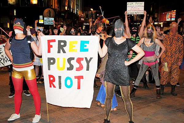 Московский Хамовнический суд приговорил солисток панк-группы Pussy Riot к двум годам колонии общего режима. В то время как в Москве решалась судьба заключенных, отсидевших в тюрьме уже 5 месяцев, по всему миру проходили акции в их защиту.