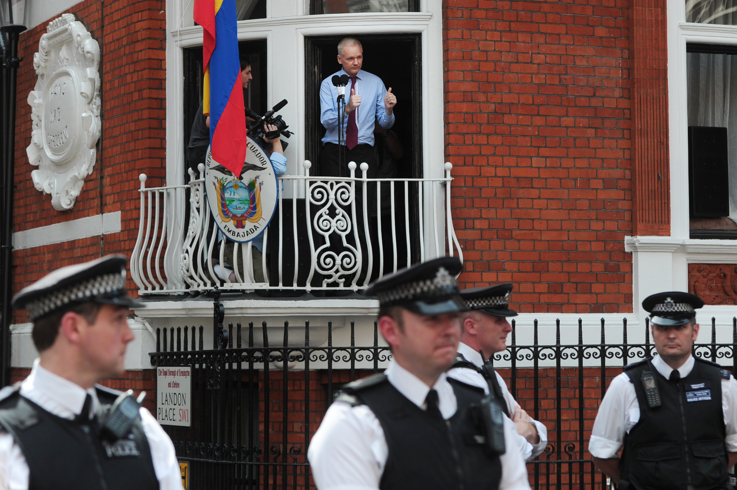 Поскольку балкон, с которого выступал Эссанж, является частью обладающего дипломатической неприкосновенностью посольства Эквадора, он не был арестован британской полицией.