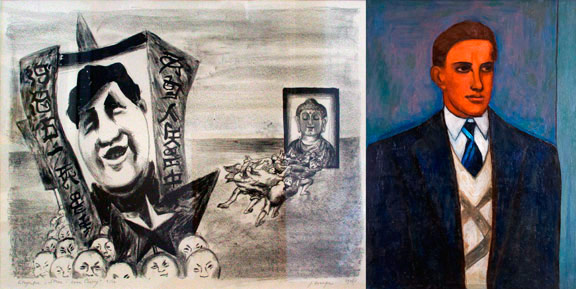 Янина Краупе-Свидерская, "Старый и новый Китай", 1948; Ежи Новосельский, "Маяковский", 1950. Коллекция Петра Новицкого. Первый зал в основном заполнен произведениями соцреализма. Интересно, что польского соцреализма почти нет – но не потому, что его нет в коллекции Новицкого. Его вообще, можно сказать, не существовало. Польским художникам удалось сразу же после смерти Сталина, на знаменитой выставке 1955 года «Арсенал» раз и навсегда отвоевать свое право делать то, что им хочется. Соцреализма не стало. В СССР подобная попытка, предпринятая на выставке в Манеже в 1962 году, провалилась. Такую решительную победу поляков в своей статье для каталога объясняет директор Музея декоративно-прикладного искусства: «в Польше традиционно более сильное, чем государство, гражданское общество».