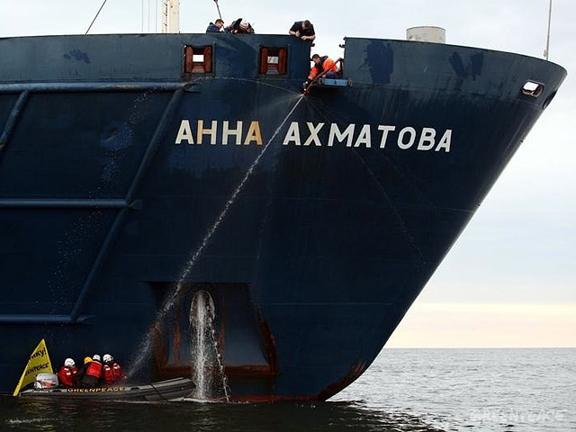 Активисты Greenpeace снова вредят "Газпрому" - приковали себя к "Анне Ахматовой"