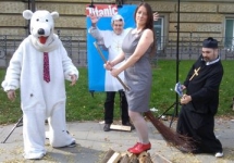 Несмотря на отмену заседания, сотрудники журнала провели перед зданием суда намеченную ранее акцию. Они организовали перформанс с символическим сожжением ведьм на средневековом рынке с позорным столбом.