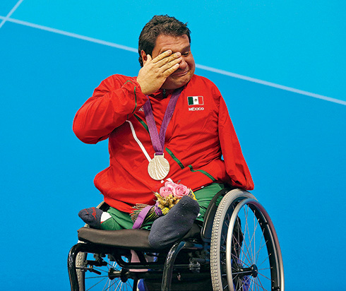 Мексиканец Арнулфо Касторена плачет после вручения ему серебряной медали, завоеванной в заплыве на 50 метров брассом