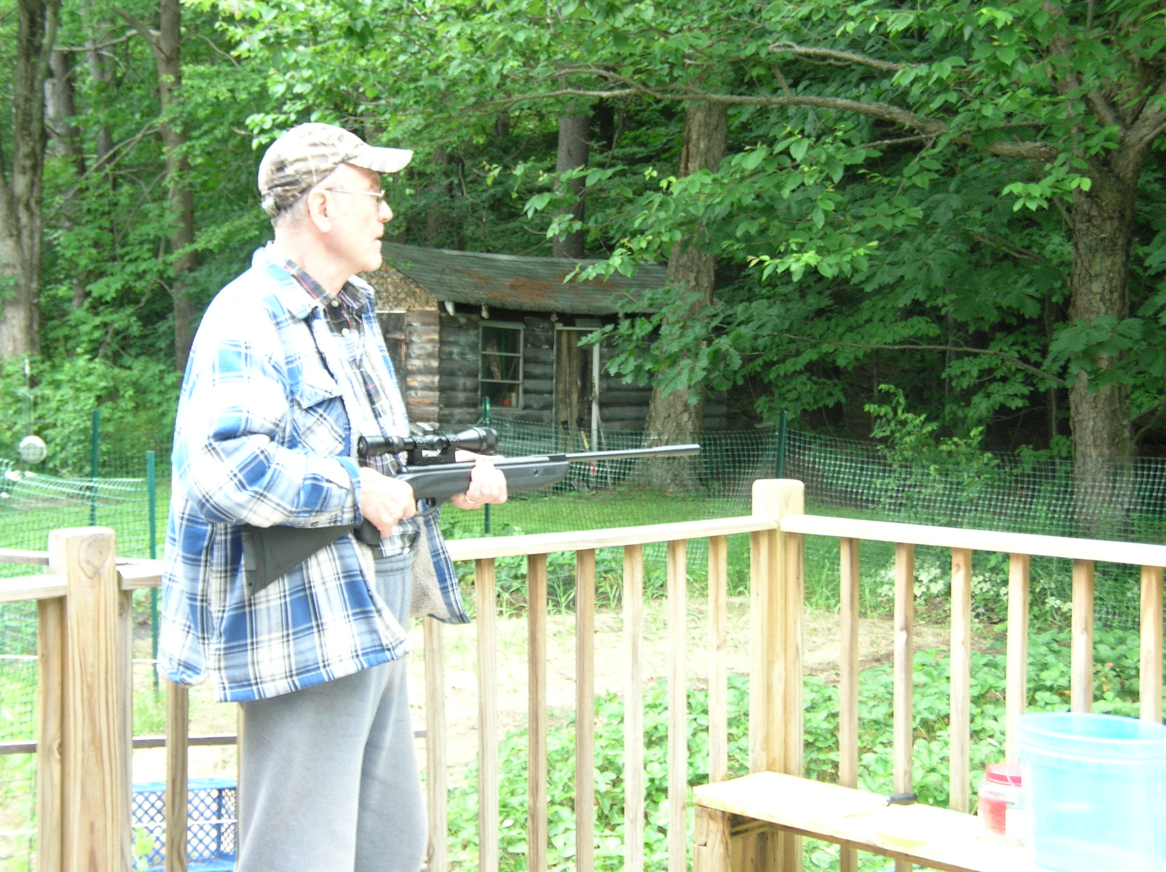 Я сижу на заднем крыльце своего коттеджа, в руках у меня винтовка с оптическим прицелом. Рядом на стуле пистолет. Он тоже заряжен. Оружие духовое, но мощное. Пулька вылетает из ствола винтовки с такой же скоростью, что и пуля мелкокалиберки. Я бы из мелкашки стрелял или из дробовика, с которым хожу охотиться на диких канадских гусей. Но слева от меня, метрах в 50-ти, дом одних соседей, справа - других. А по американским законам, огнестрельным оружием можно пользоваться, только когда до ближайшего жилья не меньше 500 футов (150 метров).
