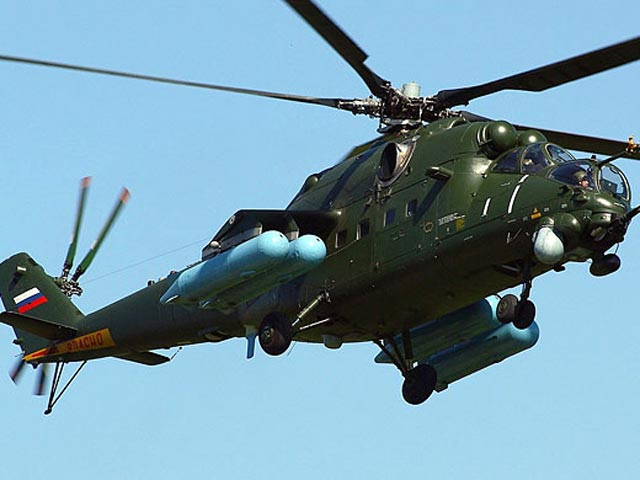 Ми-35 - экспортный вариант ударного вертолета Ми-24. Как отмечает сайт Минобороны, он предназначен для выполнения боевых задач круглосуточно и в сложных метеоусловиях.