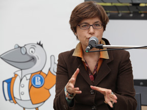 Ксения ЮдаеваПервой перед студентами ВШЭ на политической площадке в Парке Горького выступила начальник экспертного управления администрации президента РФ Ксения Юдаева. Ее выступление было полностью посвящено механизмам экономического кризиса в России, Америке и Европе и механизмам борьбы с ним.