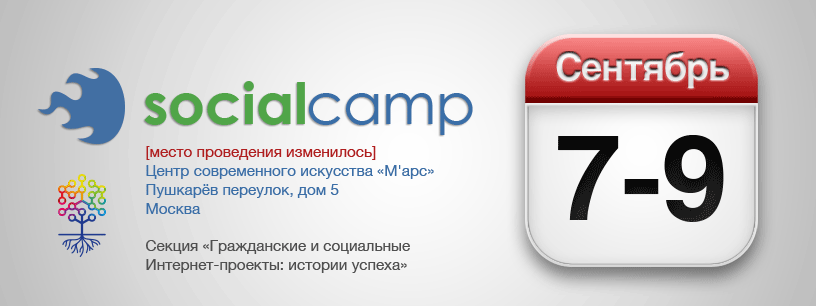 Теплица социальных технологий стала соорганизатором главной «неконференции» в России SocialCamp Russia. В течение 3 дней активисты рассказывали о проектах, направленных на повышение информированности, улучшение взаимопонимания между людьми, развитие благотворительности и многие другие вещи. Теплица организовала секцию «Гражданские и социальные Интернет-проекты: истории успеха».