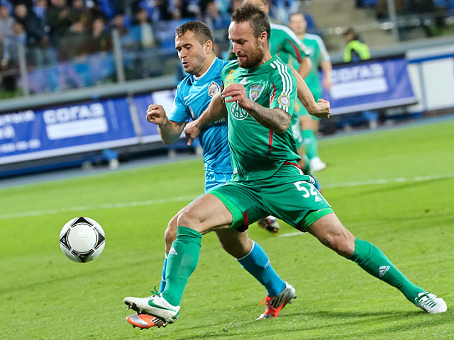 В первом тайме в игре наблюдалось значительное преимущество "сине-бело-голубых". Хорошие моменты для взятия ворот имели Широков, Файзулин и Денисов. А у "Терека" пару раз мог отличится Ндоасель. Еще в одном эпизоде мяч в штрафной питерцев попал в руку Быстрову, но судья не стал назначать пенальти, так как полузащитник сыграл плечом.