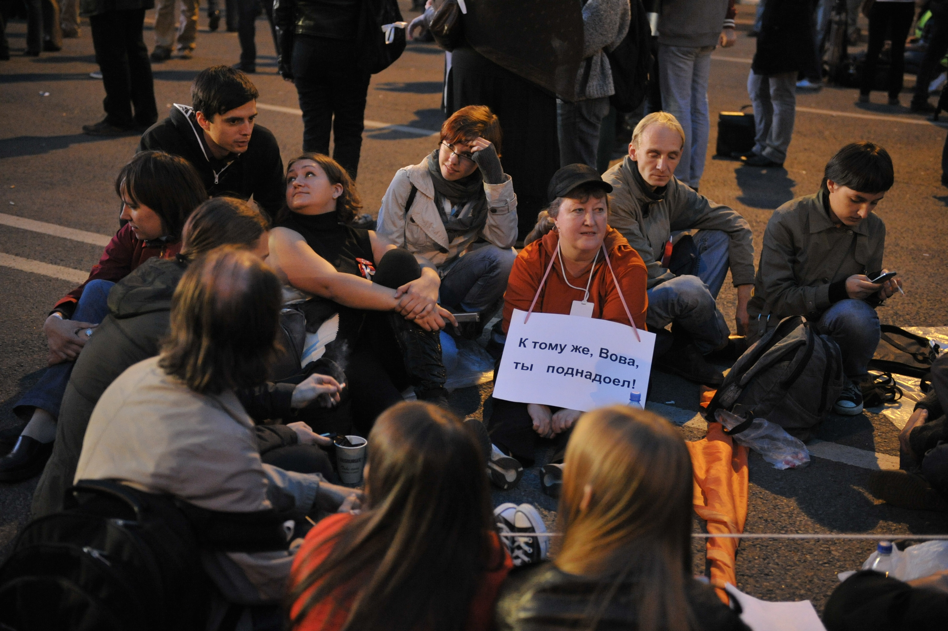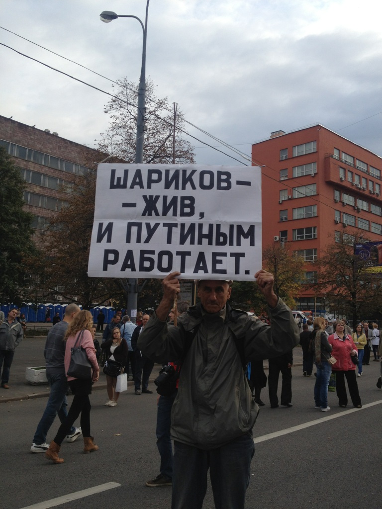 Лозунг от Сергея Шаргунова - "Серая тля, вон из Кремля. Будем стоять, сколько захотим".