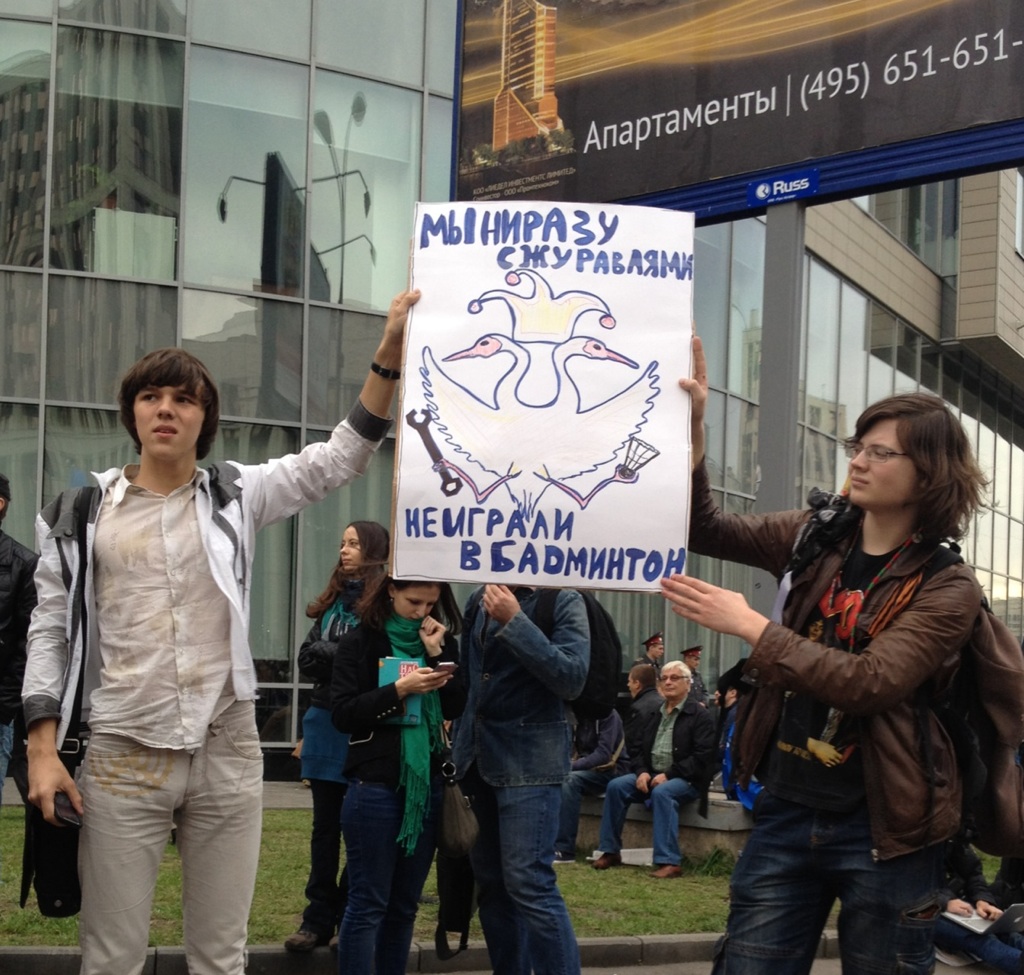 Один из слоганов дня: "Лучше журавль в небе, чем дятел в Кремле".