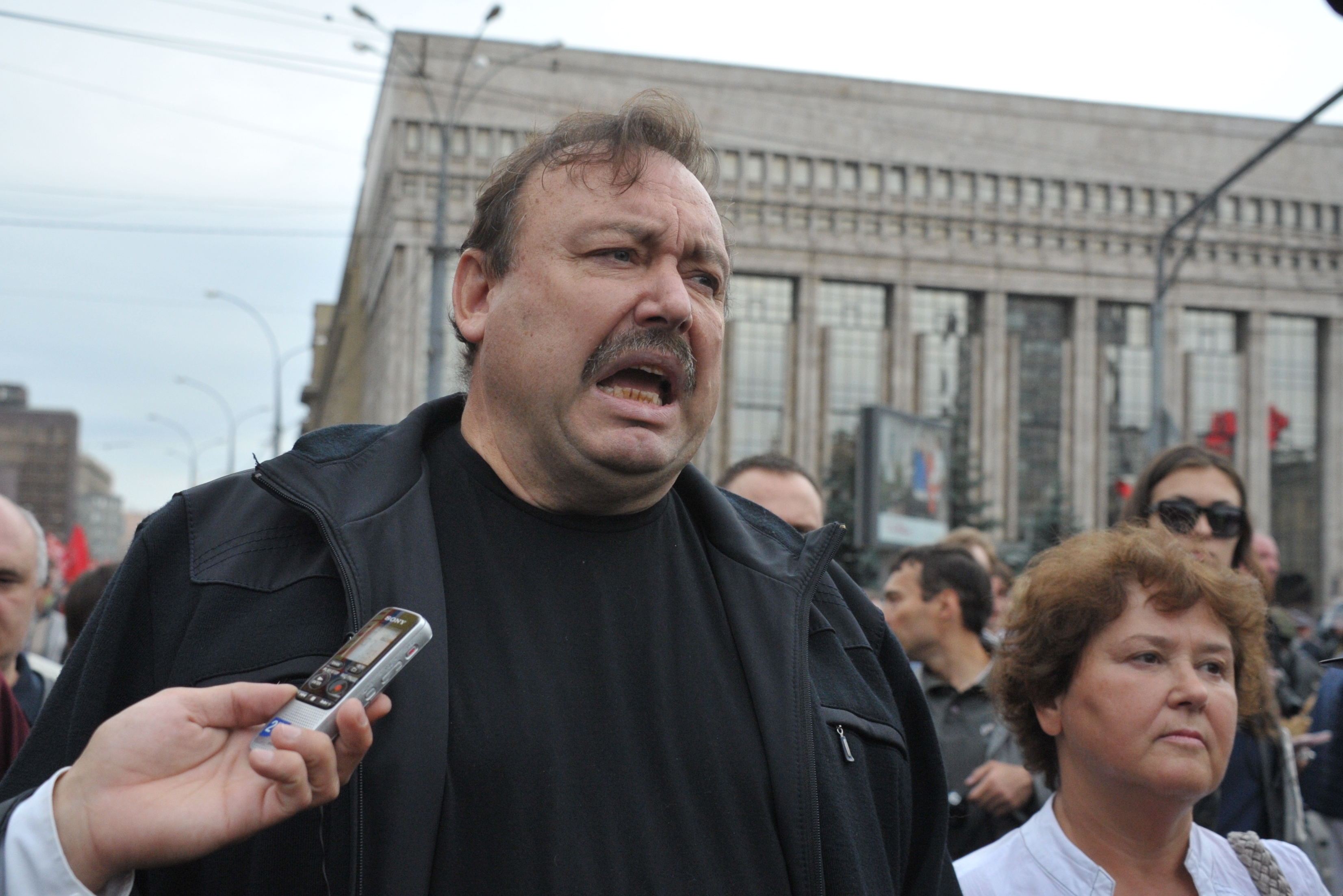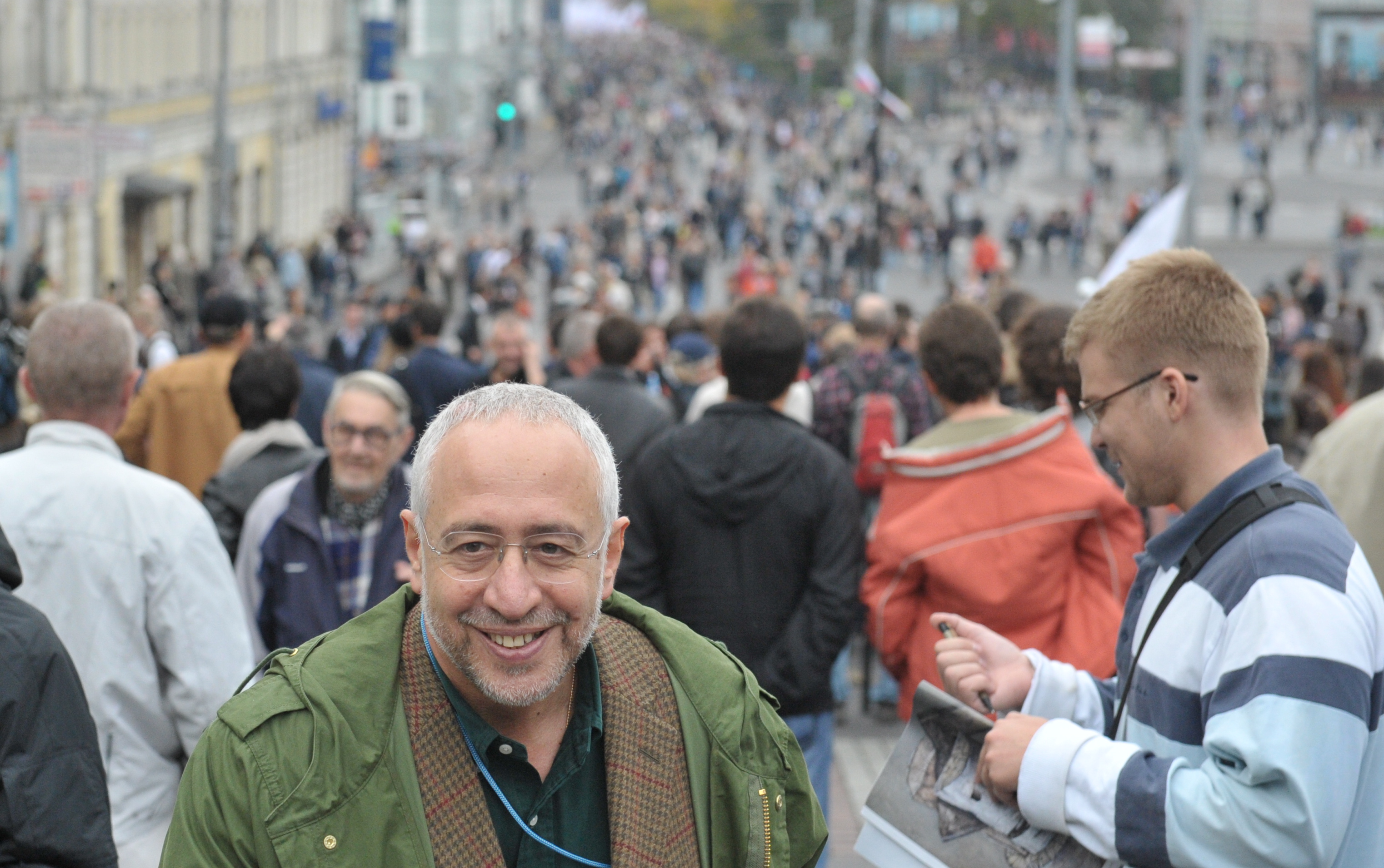 Среди собравшихся заметен Глеб Павловский, он раздает интервью.