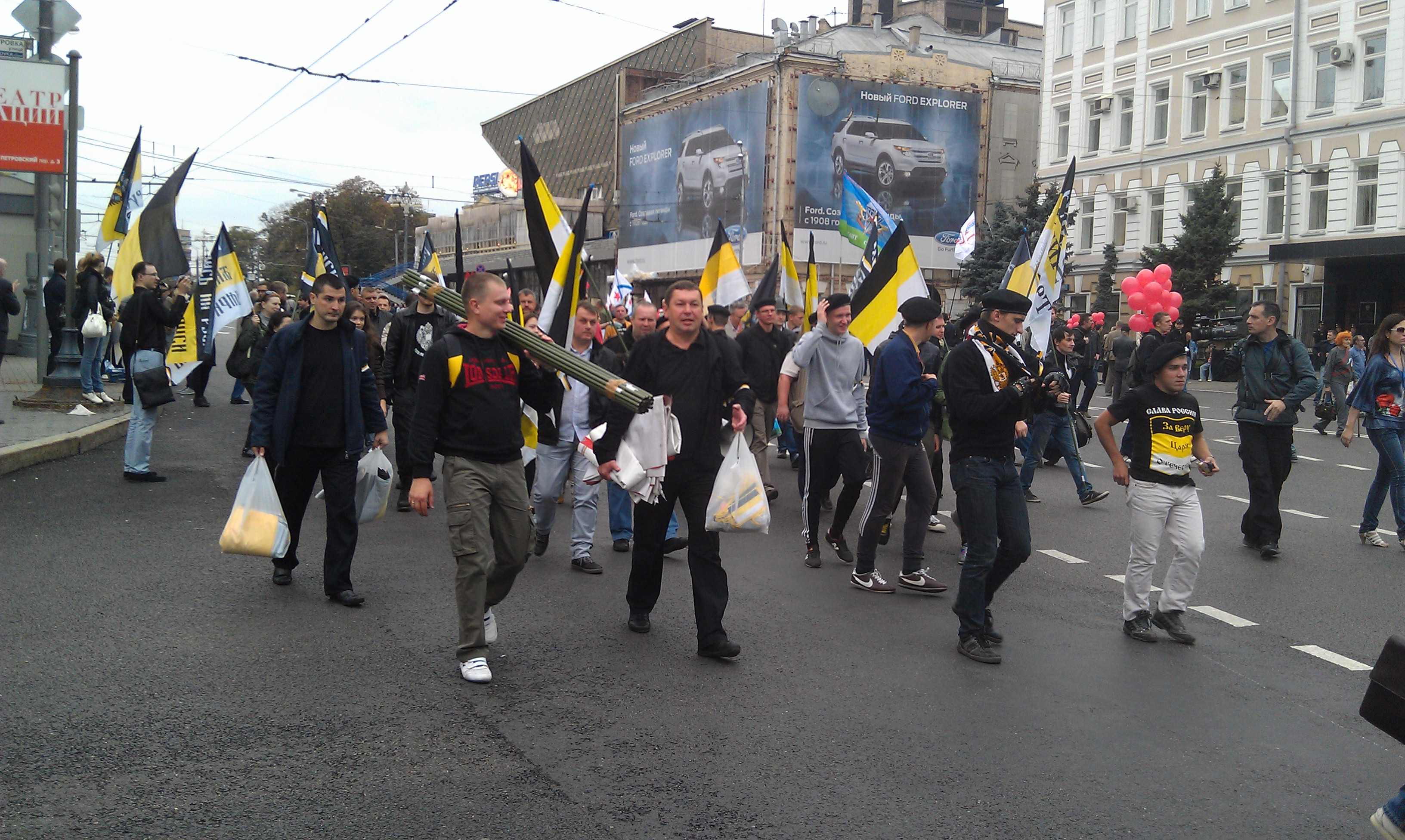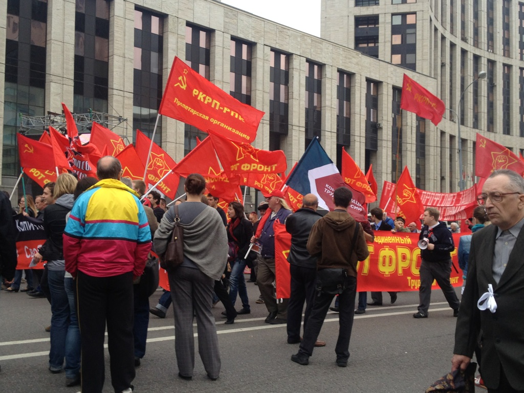 Между тем площадь пустеет. Около сцены - "Солидарность", "Левый Фронт", националисты, КПРФ. Далее "Рот фронт", анархисты, а далее стали видны пустоты - некоторые группы начали расходиться.