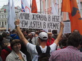 "Газета.ру": "Организаторы еще накануне объявили, что митинг будет 6-часовым, то есть пока время, согласованное с мэрией, не выйдет. Поэтому слово решено было предоставить всем желающим. С речами выступили десятки человек – от писателя Дмитрия Быкова и отцов арестантов по «болотному делу», до рабочей московского завода «Салют». В целом публика сохраняла равнодушие к ораторам. Например, когда главный редактор интернет-портала «Свободная пресса» писатель Сергей Шаргунов кинул со сцены затейливый лозунг «Серая тля вон из Кремля», большинство предпочло не отрываться от своих гаджетов и продолжило строчить в Twiiter".