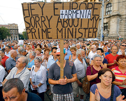 Тысячи людей вышли к венгерскому парламенту, чтобы протестовать против экстрадиции в Азербайджан Рамиля Сафарова, отбывавшего в Венгрии пожизненный срок за убийство армянского военнослужащего Не учите жить Брюссель, естественно, не мог спокойно смотреть, как у него под носом строится авторитарное государство. Под давлением Европы Орбану пришлось внести изменения в Закон о СМИ (им вернули возможность раскрывать свои источники только по решению суда, а не Нацсовета под руководством Салаи). А вот критика Брюсселем текста новой Конституции ни к чему не привела — Орбан не пожелал ничего менять: «Пусть они не учат нас жить». «Орбан, по сути, уже находится в международной изоляции, — говорит Балаш Надь Наварро. — Когда Венгрия в 2011 году председательствовала в ЕС, в Будапеште не прошло ни одного сколько-нибудь серьезного мероприятия. Орбан гордо отказывается от миллиардов МВФ, но при этом пытается найти деньги в Казахстане, Малайзии, Китае… Даже азербайджанского уголовника отпустил, надеясь получить хоть какие-то инвестиции из Баку»