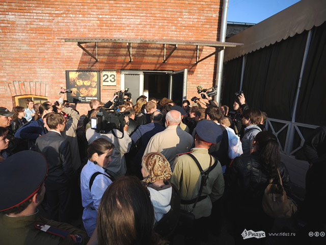 В результате у входа в музей появились молодые люди с иконами и гитарой, которые устроили импровизированный концерт. Один из участников концерта - Дмитрий Энтео, православный активист, который, в частности, сорвал футболку с изображением Pussy Riot с человека на Павелецком вокзале, а днем позже ворвался со своими единомышленниками на спектакль "Театра.doc", посвященный панк-группе.