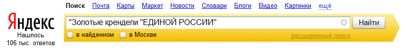 Уже сейчас Яндекс выдает более 100 тысяч страниц по запросу «Золотые крендели "ЕДИНОЙ РОССИИ"».