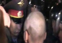 В свою очередь сотрудник полиции, задержавший Удальцова, сообщил, что сначала о завершении акции было объявлено в мегафон. "Он (Удальцов. - Ред.) говорил что-то вроде: "Дорогие друзья, давайте продолжим гуляния, пойдем на Чистопрудный бульвар". Судя по всему, это было после десяти. У нашего старшего, когда мы уже завели Удальцова в автобус, на часах было 22.02. До автобуса мы шли не больше полминуты", - сказал он, добавив, что Удальцову пояснили причину задержания. "За нарушение правил проведения массовых мероприятий. Я слышал, как ему это сказали", - сообщил сотрудник полиции.
