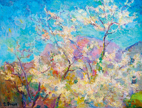 Картины парижского периода — лучшие у Фалька. Именно в Париже он нащупал новую манеру письма, зыбкую и воздушную. Картины словно напоены весенним французским воздухом и цветочными запахами. В Москве, когда, казалось бы, Париж остался далеко позади, нет-нет да и вспыхивал в глазах художника огонь, когда он слышал это слово. Не случайно близким другом Фалька послевоенных лет становится Илья Эренбург — парижанин среди русских писателей. Одна из посетительниц мастерской Фалька вспоминает, как, рассматривая однажды его французские картины, она стала называть достопримечательности города — Консьержери, Мадлен… «По лицу Фалька что-то пробежало, он точно проснулся и спросил с надеждой: «Вы были в Париже?» — «Нет, никогда не была и теперь, наверное, уже не буду». Фальк снова потух». „
