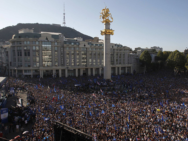 Избирательный блок миллиардера Бидзины Иванишвили "Грузинская мечта" проводит многотысячные предвыборные акции на площади Свободы в центре Тбилиси и в Кутаиси - втором по величине городе Грузии.