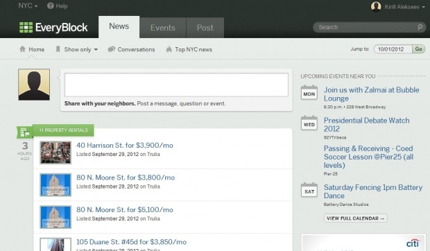 EveryBlock – экспериментальный социальный сервис, пользователь которого будет в курсе всех событий своего района, сможет принять активное участие в его жизни и завести нового интересного знакомого, который, возможно, окажется близким соседом.