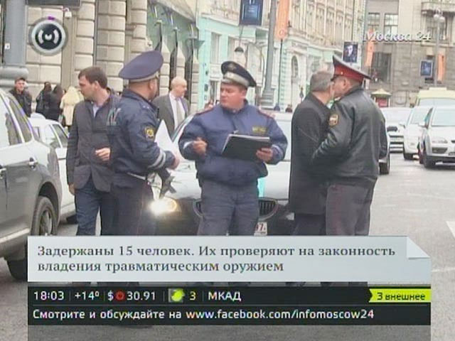 Были задержаны 15 человек, у стрелявшего гостя свадьбы был изъят травматический пистолет. Первоначально сообщалось, что владелец оружия был оштрафован по статье 20.8 КоАП на 2 тысячи рублей. При этом материалы были направлены по месту жительства стрелявшего для решения вопроса о лишении лицензии на ношения оружия. Позднее, вечером 1 октября Мировой участок Тверского суда Москвы арестовал на 15 суток Мурада Агаларова, задержанного вместе с другими гостями кавказской свадьбы. Его признали виновным в "мелком хулиганстве" (ст.20.1 КоАП).