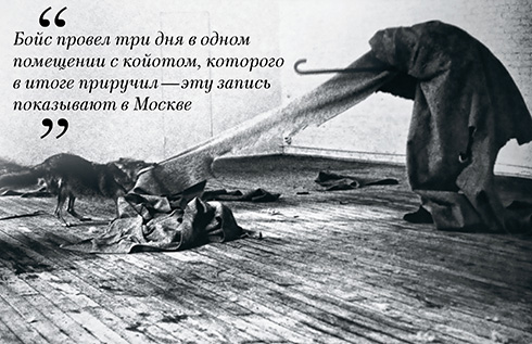 Перформанс «Койот: я люблю Америку, и Америка любит меня» И поговорить… О русском восприятии Бойса в каталоге выставки пишет Екатерина Деготь. Каталог вообще необычайно хорошо сделан — много фотографий, коротких информативных текстов и продвинутого дизайна. Он отвечает главной задаче подобных изданий — не только открывать что-то новое в сюжете выставки, но и просвещать публику. Этим же занимался и Бойс, которому изрядно доставалось от современников, упорно отрицавших за искусством право на развитие и тем более радикальную смену представлений о том, что такое границы разрешенного и как далеко их можно отодвигать.
