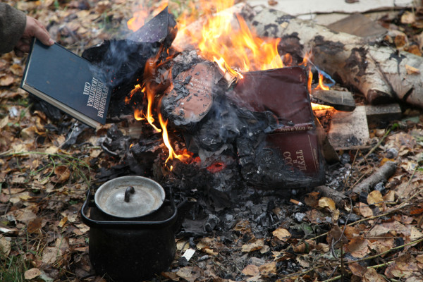 В костре горит за ненадобностью книжка "Труд в СССР" (мне объяснили, раз нет СССР — нет и труда). Следом на растопку отправляется "Современная внешняя политика США". Четвертую по счету голодовку рабочие металлургического завода в Верхней Синячихе (это поселок в 140 километрах от Екатеринбурга) начали вчера. Палатки поставили у родной проходной.