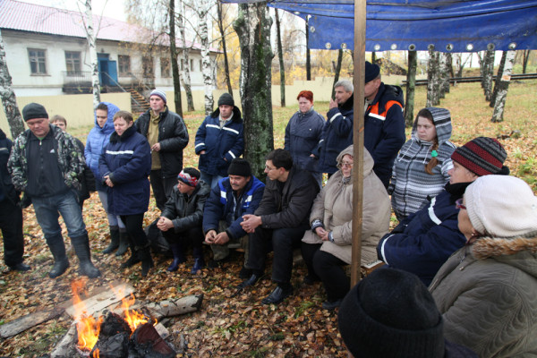Всю ночь в Синячихе лил дождь, сейчас идет снег. Люди не отходят от костра. Греются. Да и веселее вместе. Шутят, на голодовки как на работу ходят.