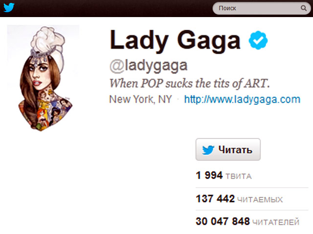 Lady Gaga - опять "королева Twitter" - более 30 миллионов подписчиков