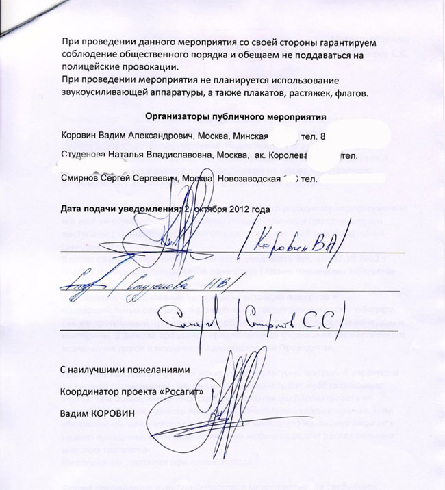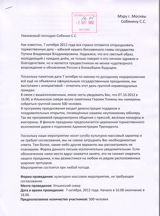 Письмо организаторов акции мэру Москвы: