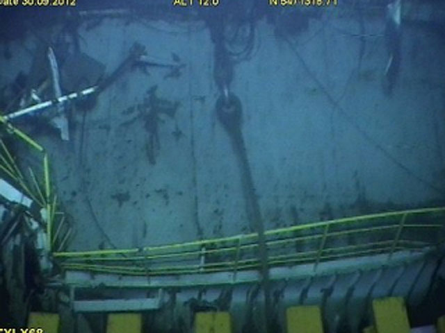 Как рассказал агентству представитель петербургской компании "Фертоинг", ведущей глубоководное обследование установки, некоторое время назад специалисты получили первые видеокадры затонувшей платформы. На них видно, что платформа сильно деформирована. Это объясняется тем, что она заполнялась водой медленнее, чем погружалась на дно, в результате чего давление снаружи было больше, чем внутри.