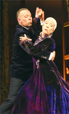 Бабушку Эухению когда-то играли Фаина Раневская и Верико Анджапаридзе. В «Ленкоме» под бабушку приспособили Инну Чурикову. Конечно, она никакая не бабушка, да и не желает ею быть. Подтянутая, с безукоризненным макияжем и французским маникюром, на высоких каблуках, с прямой спиной — она периодически меняет наряды и лихо отплясывает аргентинское танго со своим «дедушкой» (Виктор Раков, который совсем недавно годился актрисе в сыновья, — как бежит время!).