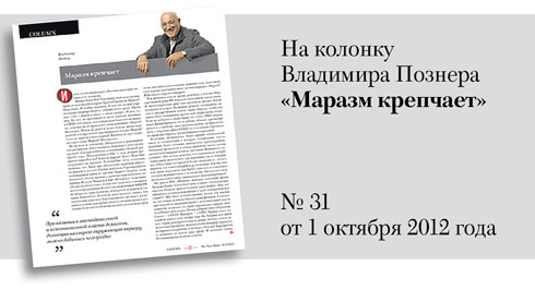markovich Нет, г-н Познер, иначе (не маразмом) это называется. Усиливается узурпация власти руководителем чекистско-номенклатурной корпорации Путиным. Верхушка ФСБ, силовиков и РПЦ, опираясь на ручной парламент, последовательно и совершенно осознанно уничтожает в стране основные демократические институты. Конечно, с точки зрения людей, понимающих устройство этого мира и законов его развития, поведение противоборствующих сторон выглядит маразмом. Но все же намного честнее не стоять над схваткой, а решительно присоединиться к оппозиции.